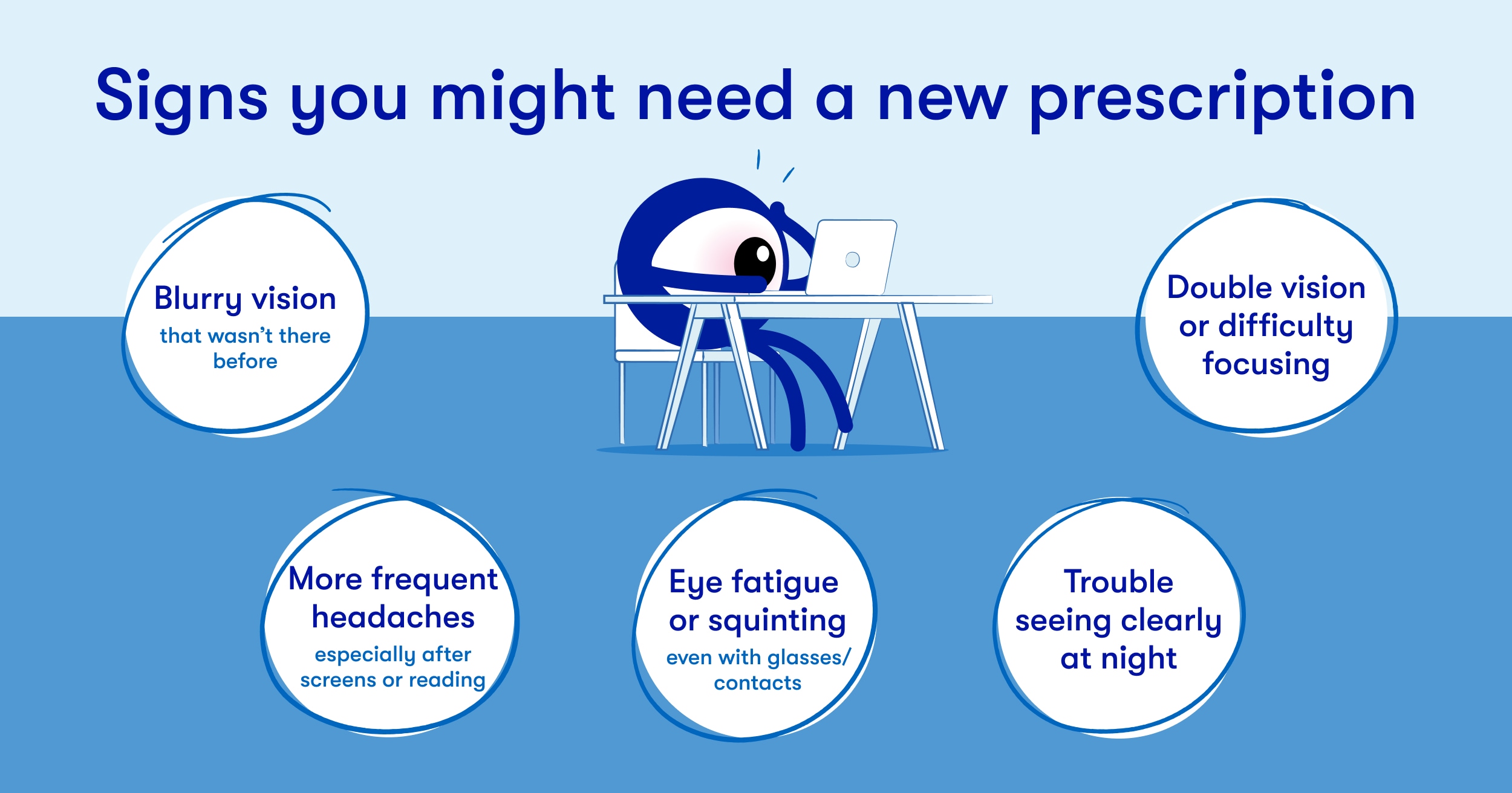 There are a few warning signs that your eye prescription no longer works for you, including: